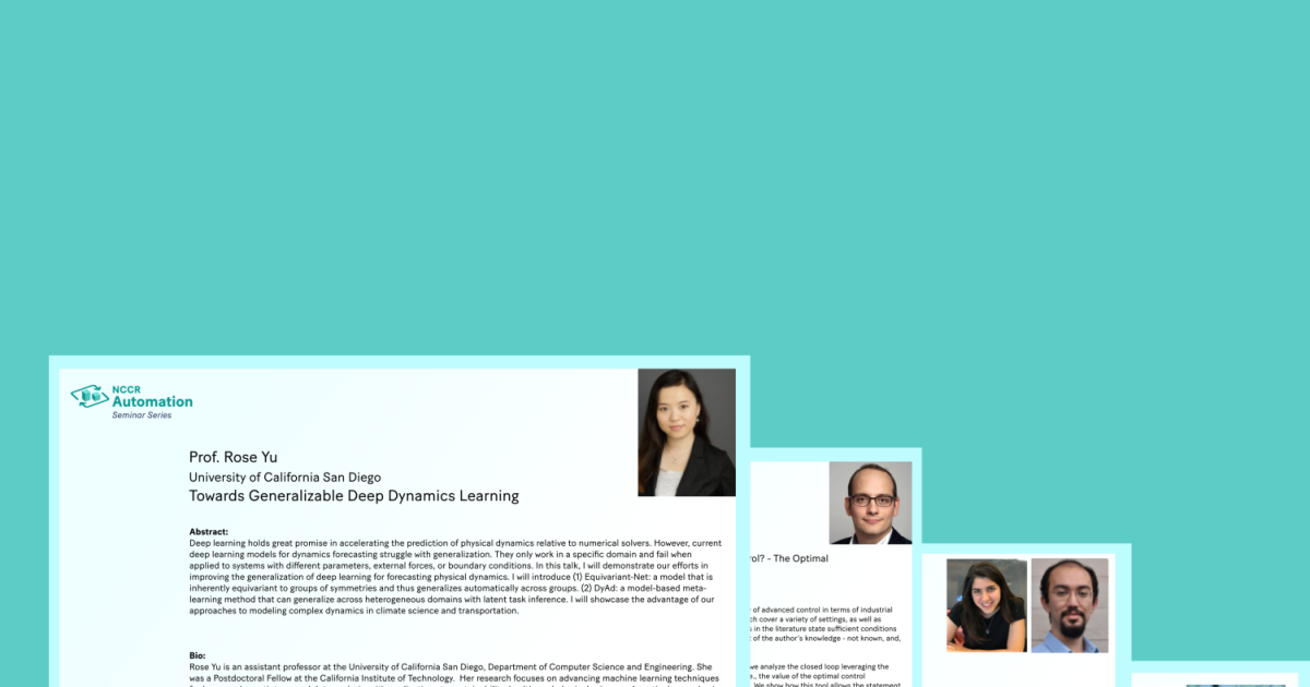 The NCCR Automation Seminar Series is a weekly seminar covering a broad range of topics in relation to NCCR Automation research.